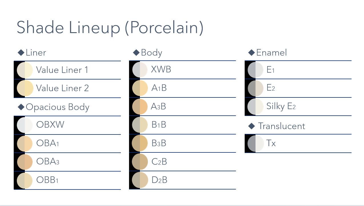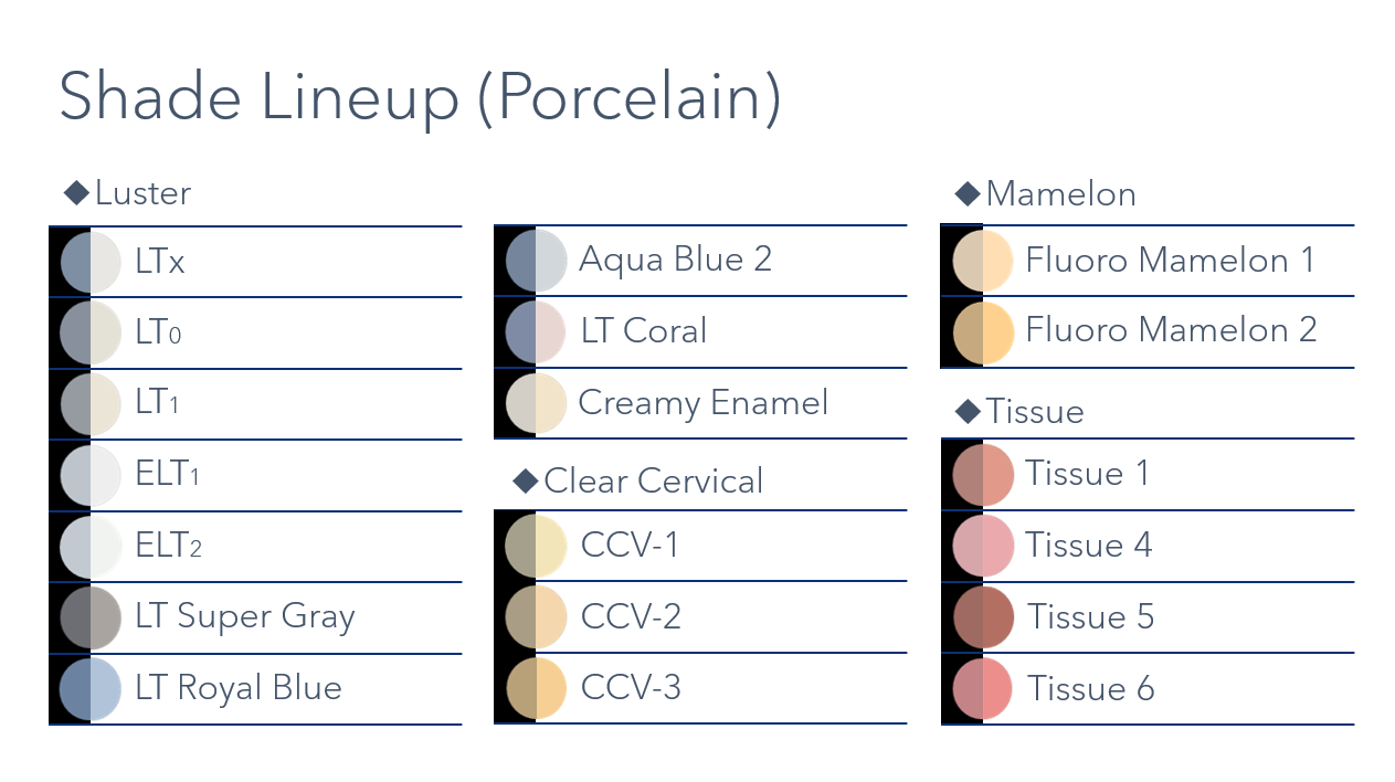 CERABIEN™ MiLai porcelain is built on a legacy of innovation that began in 1987. Developed using decades of proven technology and expertise, this advanced system combines time-tested reliability with modern enhancements to meet today’s aesthetic demands. Designed for the micro-layering technique, CERABIEN™ MiLai delivers exceptional color depth, translucency, and natural beauty—even in ultra-thin layers. Compatible with both zirconia and lithium disilicate, it offers unmatched versatility and performance, empowering dental professionals to create restorations that are as durable as they are lifelike.”